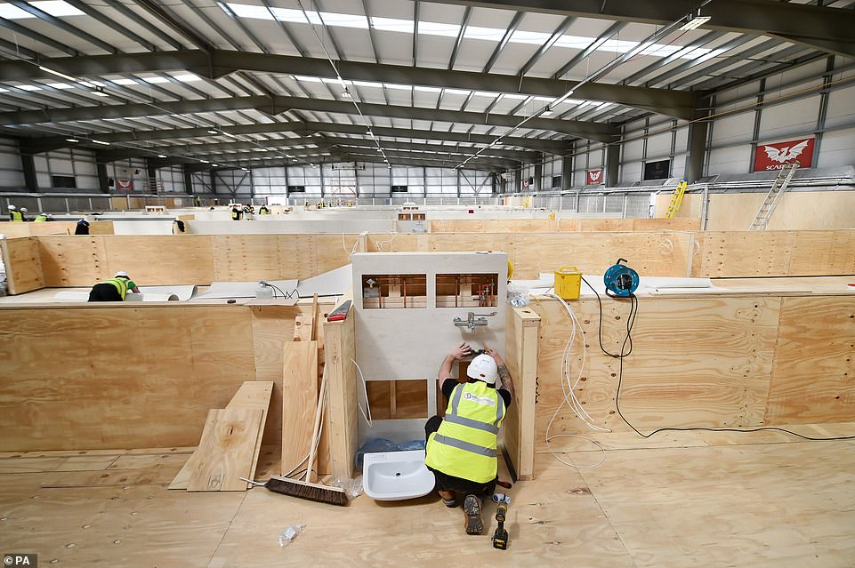与此同时,英国其他地区的“方舱医院”建设工作也正在如火如荼的进行中……