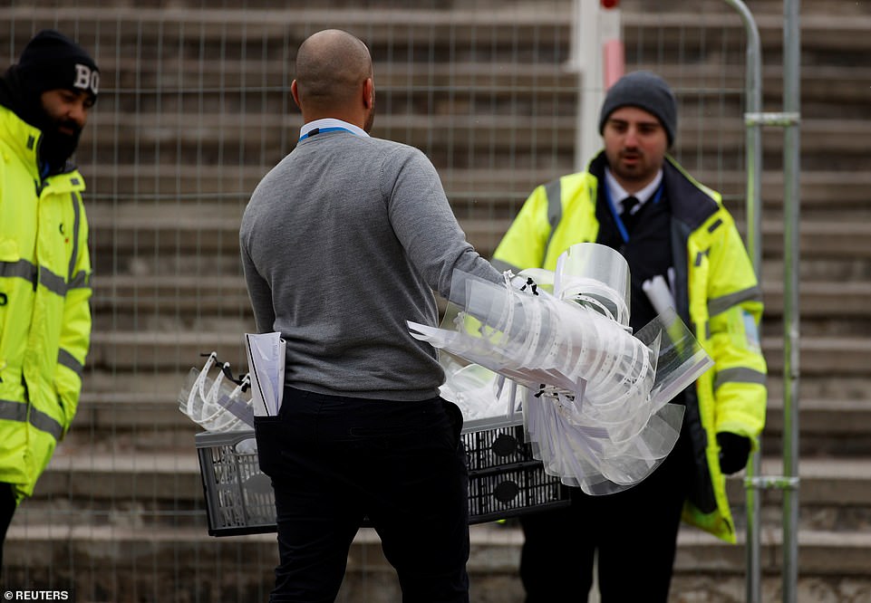 在场馆外围,修建工作也仍在继续,工人们正在搭建护栏。