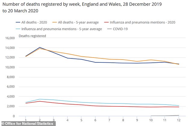 如下图所示,2019年12月28日至2020年3月20日,英国已登记的死亡人数数据