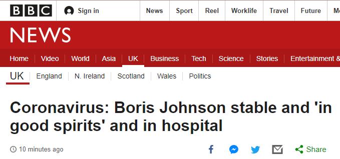 然而,就在发布会结束没多久,BBC却再次公布了让人震惊的消息——首相鲍里斯已经住进ICU了!!!