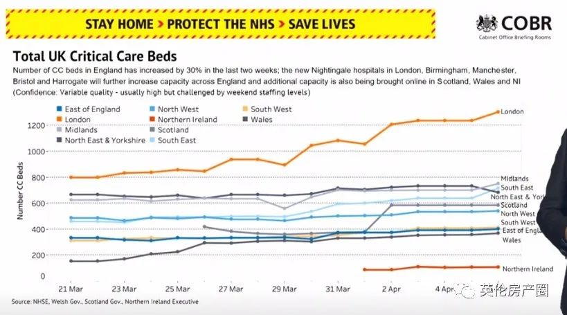 2 英国的ICU数量,现在还够,伦敦的ICU病床数一直在稳步增加中。