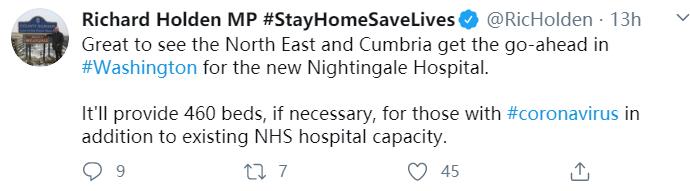 “很高兴坎布里亚郡获得批准,建立一家新的南丁格尔医院。这将提供460个床位,如果有必要,可以帮助NHS医院提高应对新冠的能力。”