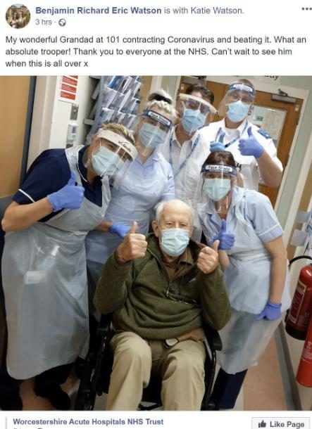 昨天,英国有一位101岁高龄的老爷爷,在与新冠病毒抗争了两周后,最终成功治愈,成为了英国年龄最大的治愈患者。
