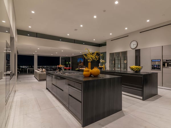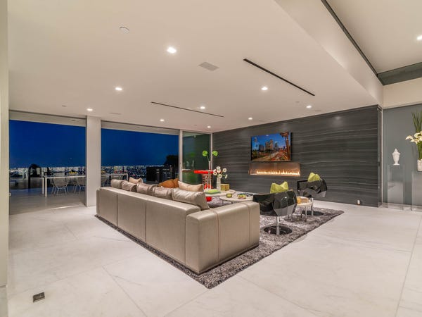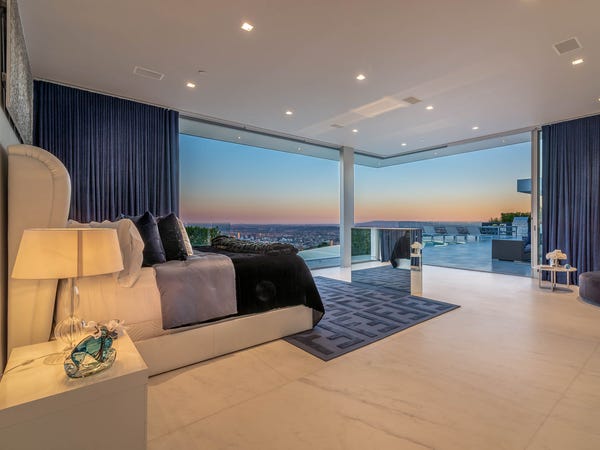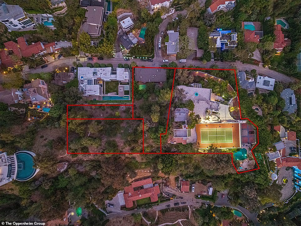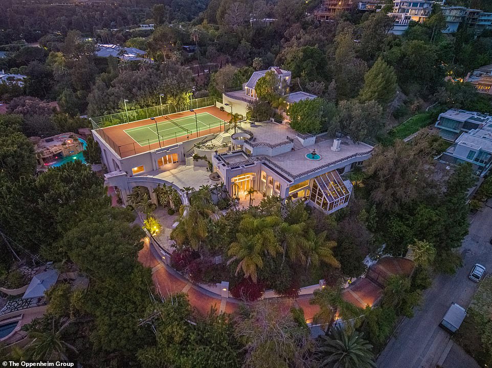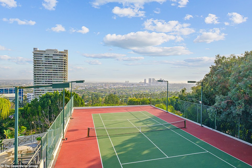 可以租住的是主屋,每月租金为80,000美元,面积为15,101平方英尺,并设有一个屋顶网球场,可以欣赏洛杉矶的壮丽景色。