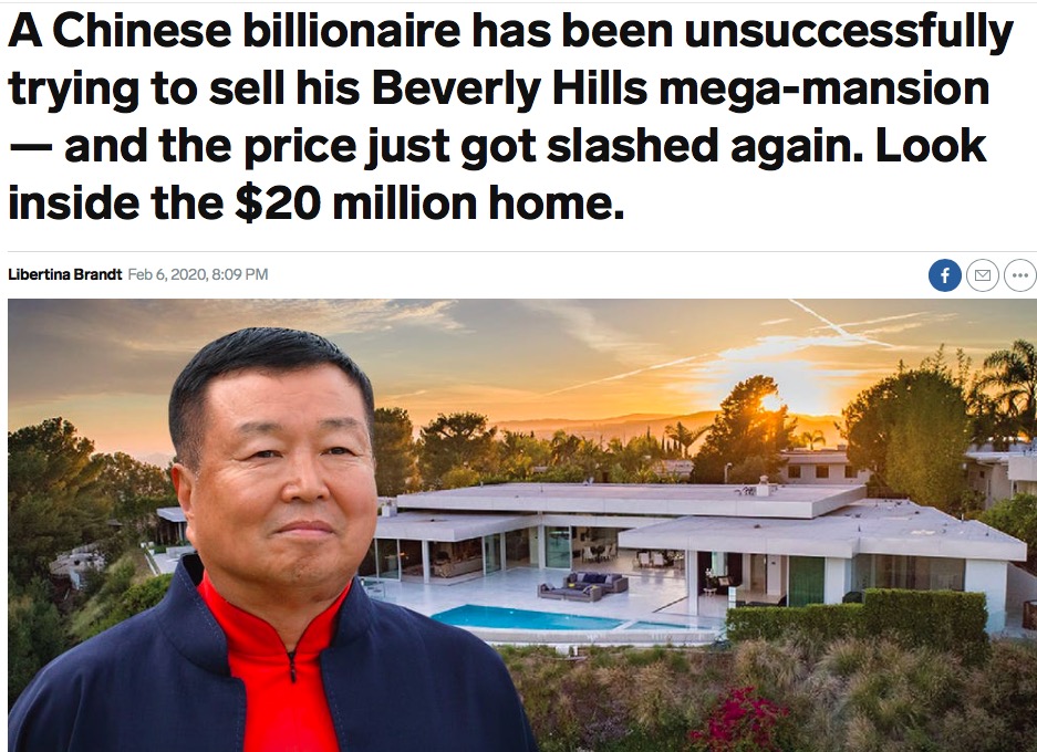2019年1月,他降价到2,490万美元,8月降价到2,250万美元,今年1月,降到1,999.5万美元……依然难以出手!