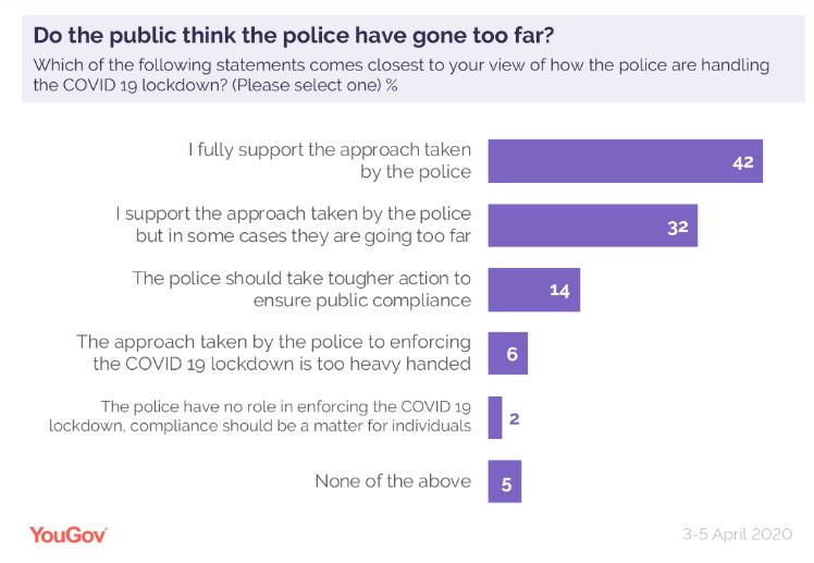 YouGov甚至发起了一项关于“警察是否做得太过了”的调查,仍有32%的民众认为,英国警察在某些情况下做得有点过分。