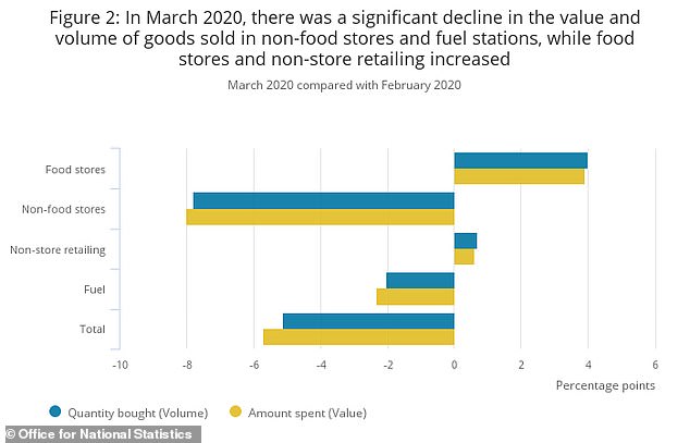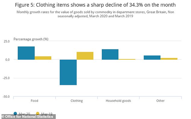 所以从数据来看,与2月份相比,英国的服装店销售额在3月出现了大幅下降,降幅高达34.3%。