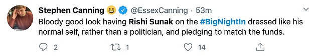 在表达了对英国上下团结起来抗疫的感谢后,Rishi Sunak突然宣布,这次筹款活动结束后,英国政府将拿出和筹款额一样的金额,捐给英国国家紧急情况信托基金,并保证最低捐款额为2,000万英镑。