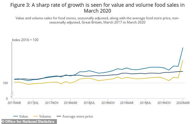 单把食品店拉出来看的话,从2017年3月开始,英国的食品店销售都基本保持平稳,而到了2020年3月,就变成了指数型增长,销售额和销量两项指标都出现了大幅增长。