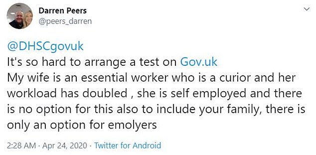 有网友吐槽部分岗位选不了家人:“在系统中进行预约检测太难了!我的妻子是一个关键岗位工作人员,但她是自雇的,系统不支持选择家人,只有一个选项,那就是雇员。”