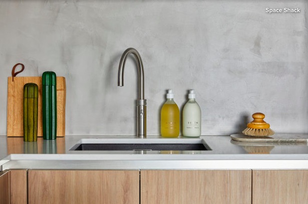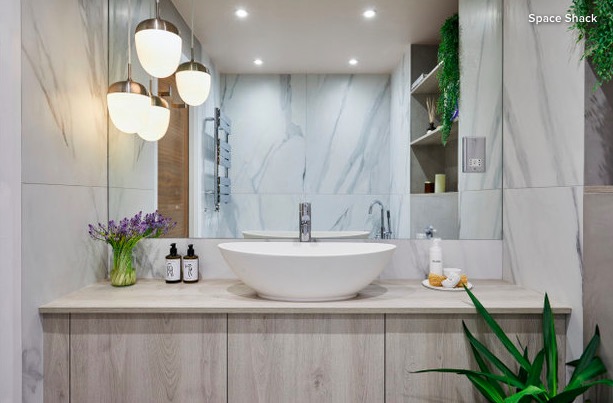 简单的LED灯在洗手池的一侧,增添了一些活力。