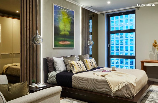 原本的卧室是需要通过一个带衣柜的走廊进入的,奥马尔直接将走廊并入了卧室的一部分,使卧室的大小增添了不少。