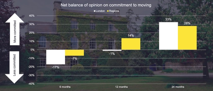 我们可以看出,6个月内,伦敦想要搬家的人数量减少了17%,但长期来看,未来12个月内,想搬家的人增加了33%,高于其他地区的28%。