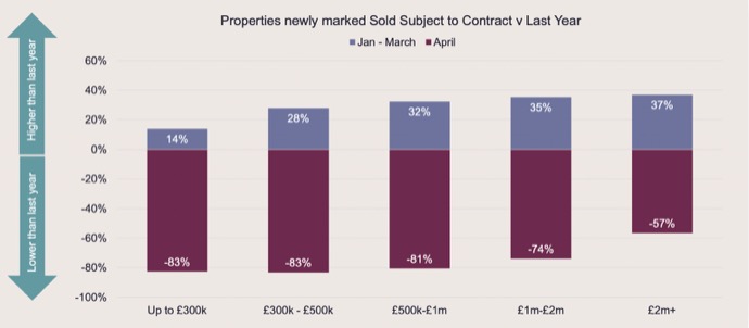 受冲击最大的是价位50万英镑以下的房产,同比下降了83%。