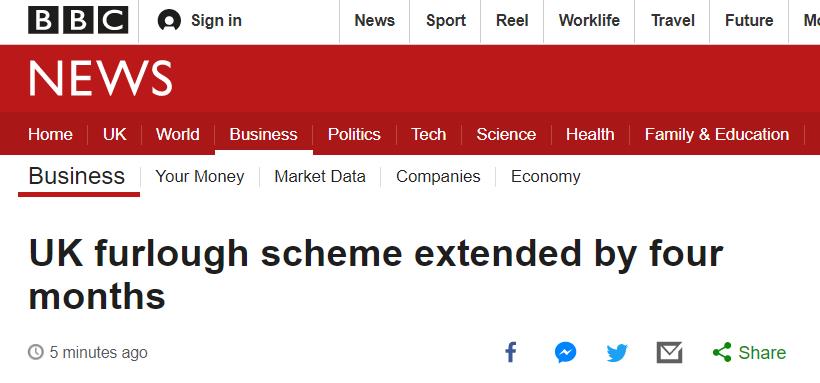 谁曾想,就在今天,英国财政大臣Rishi Sunak对外表示,英国的“带薪休假计划”将从原本的6月底继续延长至今年10月份。