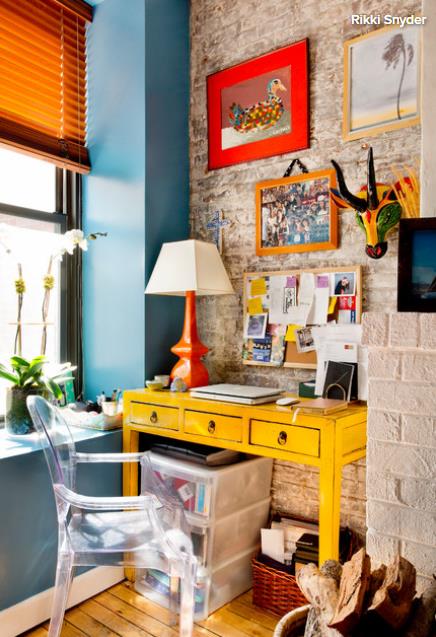 或者利用阳台,打造一个小小的办公角,比起办公室的格子间,在这样色彩缤纷的地方办公,心情也会好很多吧~