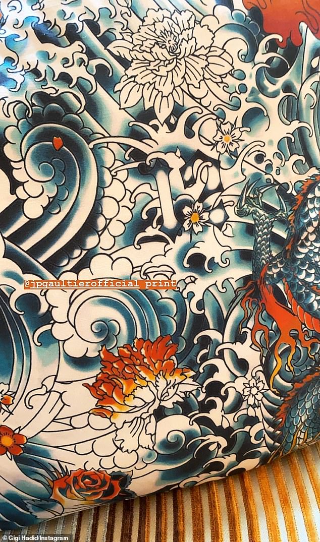 另一个抱枕是出自设计师Jean-Paul Gaultier之手,上面有龙和海浪的图案~