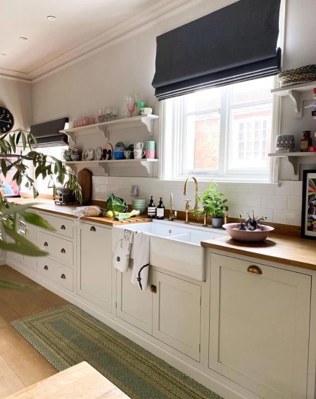 在厨房的操作台和置物架上,佐伊也摆放了一些小型的绿植,这让整个空间都活泼起来。