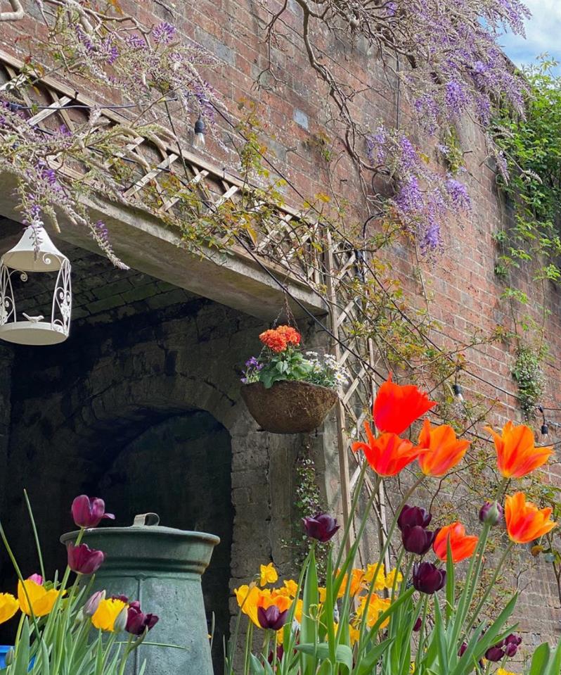 在佐伊的花园,除了舒适的休息区外,到处都是错落有致的植物,墙壁上的紫藤让整个院子有了一种梦幻的感觉。