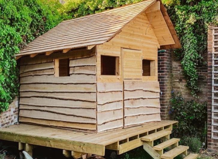孩子们可以玩耍的木头房子。