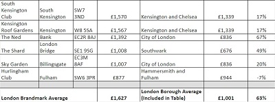 除了上述品牌外,值得注意的是,伦敦一些摩天大楼附近的房产价格也相对较高。