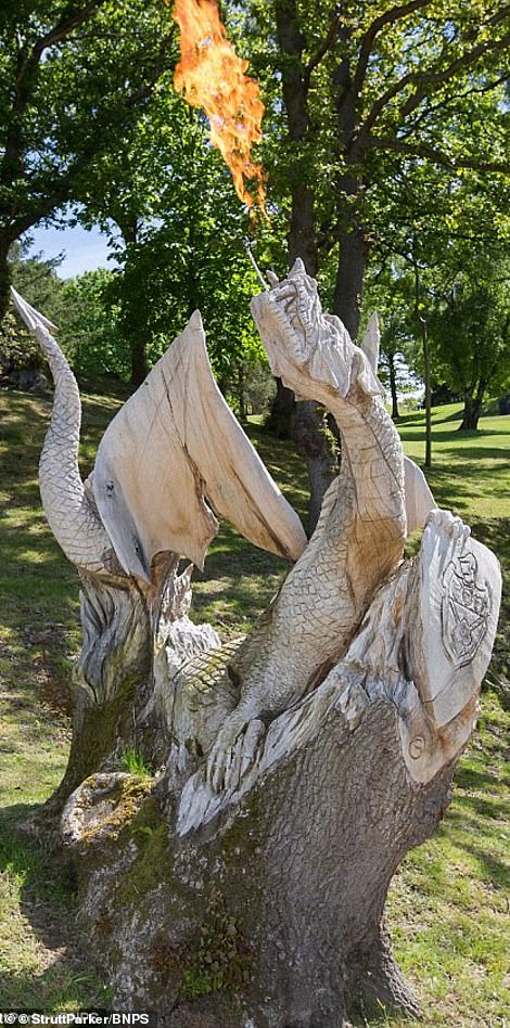 花园内还有很多特色雕像,可以喷出火的石龙。