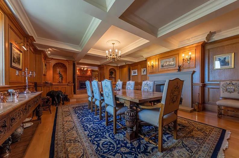 城堡占地为7,800平方英尺,内部共有六间套间卧室、五间浴室和八间豪华客厅,室内风格复古奢华。