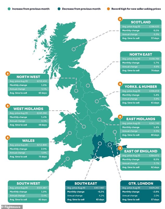 如下图所示:英国各地房价、上涨情况及销售速度