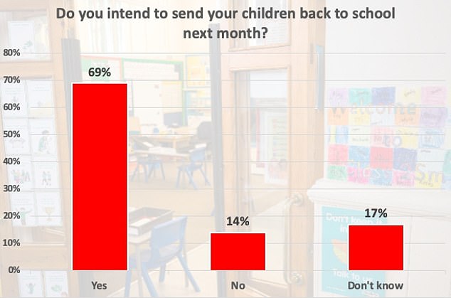 9月,英格兰学校计划如期开学,但是民意调查显示,有大约三分之二的家长会送孩子回学校,14%的家长不会送孩子去,而17%的家长表示不清楚,还没定。