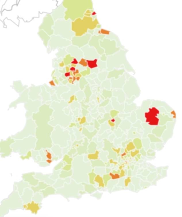 未来Breckland、Bolton、Pendle将成为疫情高风险地区。