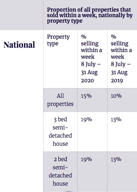Rightmove数据显示:与去年同期相比,房产上市出售后一周内出售房屋的数量激增。
