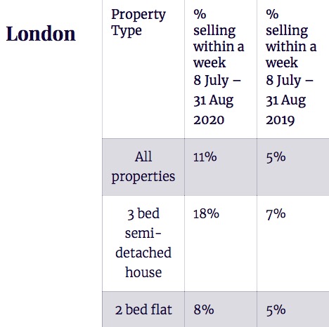 在伦敦,所有房型的一周内销售比例在11%,高于去年同期的5%。