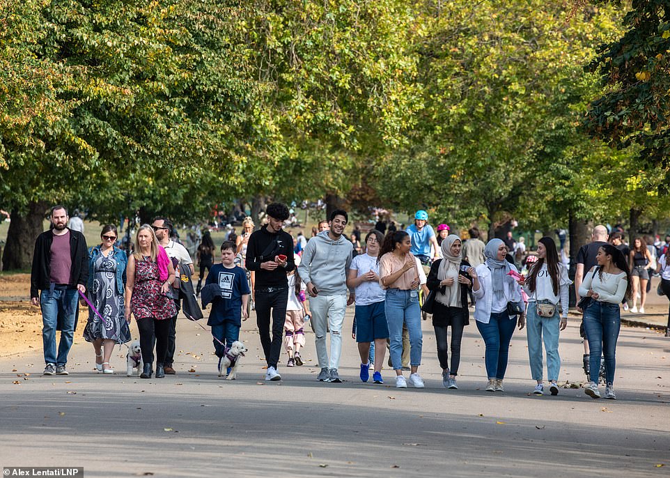 在禁止六人聚会限制措施出台后的第一个周末,伦敦海德公园依然有不少人