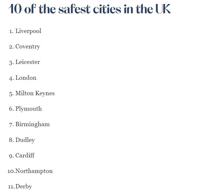 【英国最安全的城市排名】