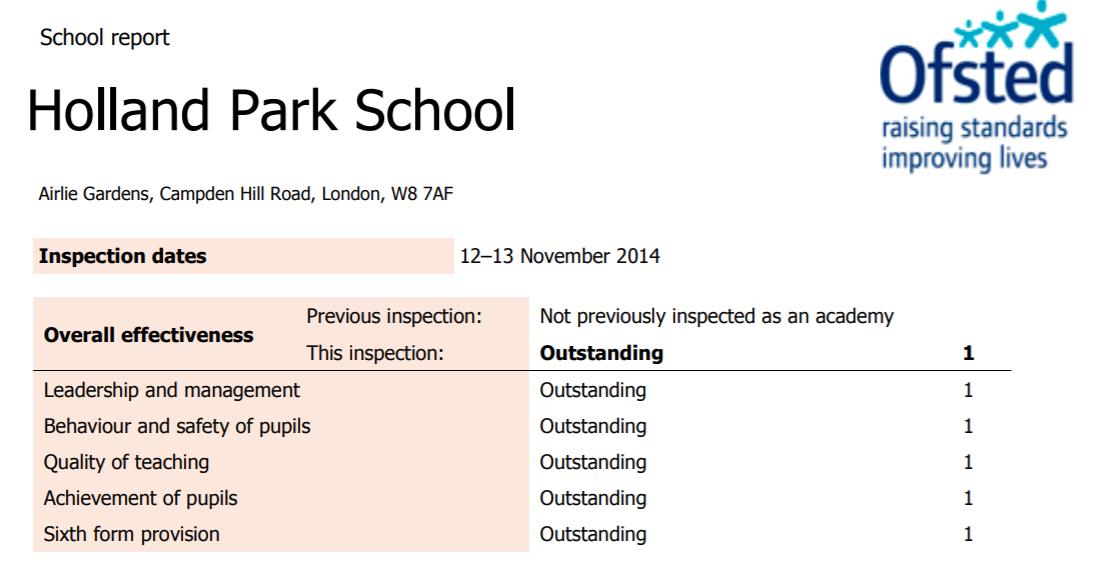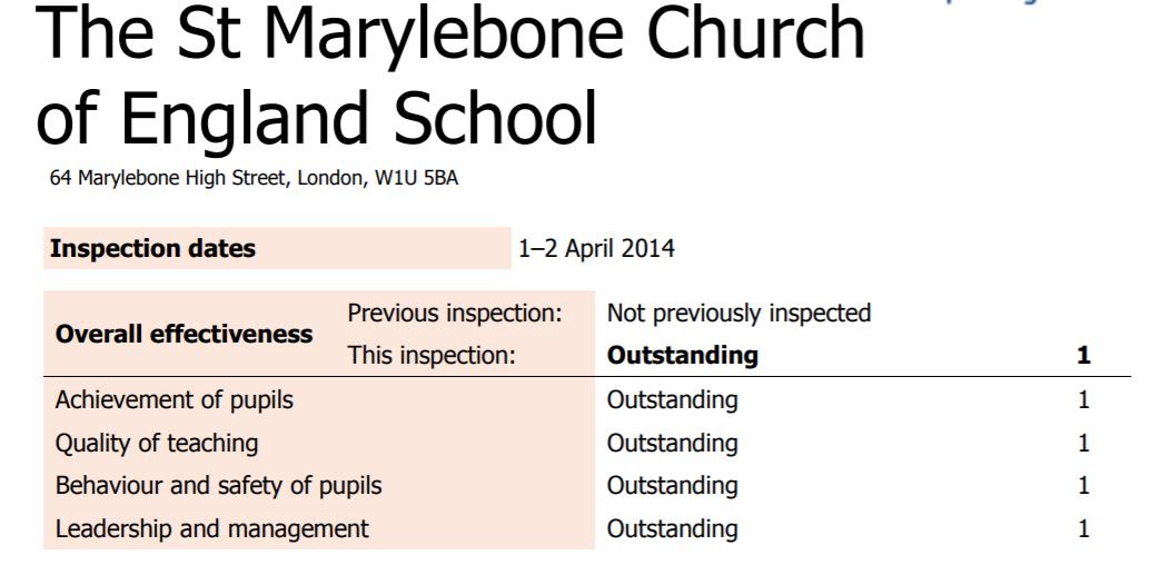 可以看出,排名靠前的学校均是公立学校中的佼佼者,The St Marylebone CofE School之前就被Ofsted评为“各方面都杰出”。