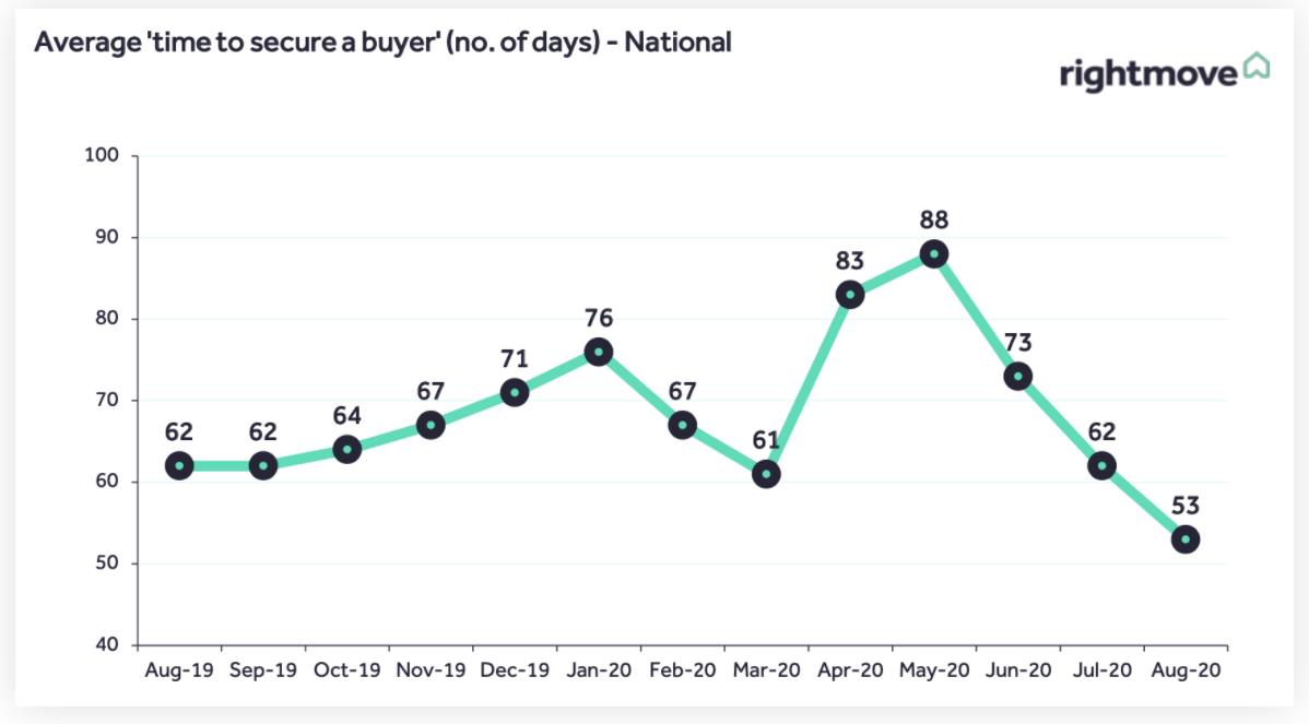 而在需求支撑下,不仅房屋要价持续增长,房屋出售速度也更快。在全国范围内,房产的平均销售速度已经从2019年9月的62天减少到今年的53天,而伦敦房产的平均销售速度为49天,比去年同期缩短了近20天,目前仅次于苏格兰。