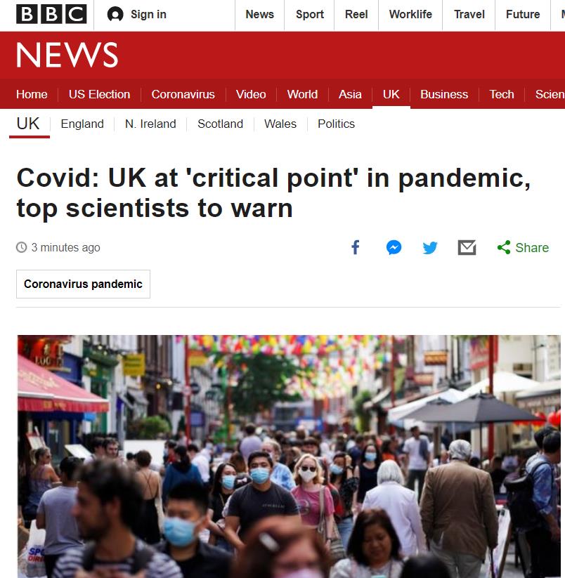 由于“内外”疫情迅速升温,英国政府甚至警告称,英国正处于新冠大流行的“关键时刻”,可能即将走上错误的道路。