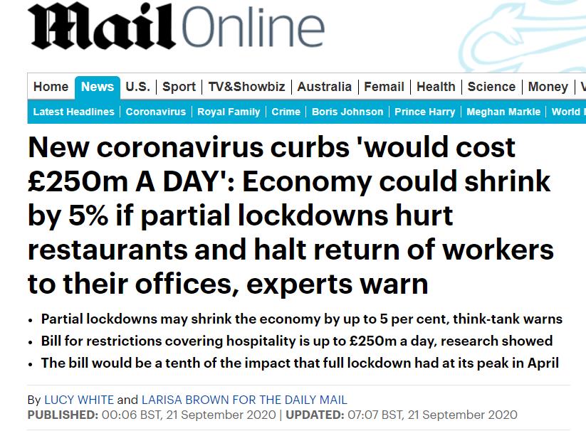 另外,英国经济和商业研究中心(CEBR)的最新研究显示,部分封锁可能会使英国每天损失2.5亿英镑,相当于4月份全面封锁时的十分之一。