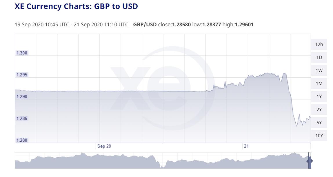 此外,英镑兑美元也一度下跌至1.2837。