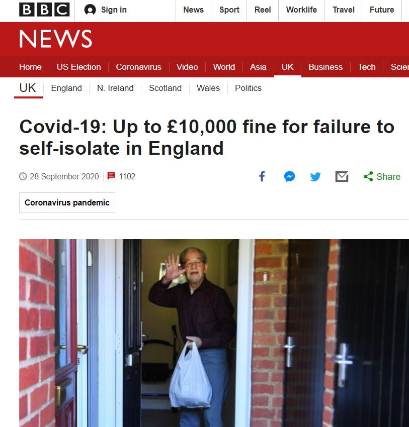 - 英国颁布自我隔离法,未来不遵守自我隔离规定者,将处于最高1万英镑罚款…