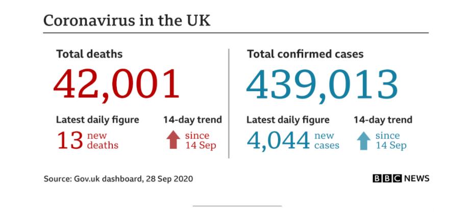 英国近期的疫情形势不容乐观,在过去24小时内,英国新冠新增确诊病4,044人,新增死亡数13人,而截至目前,总确诊人数已经达到了近44万。