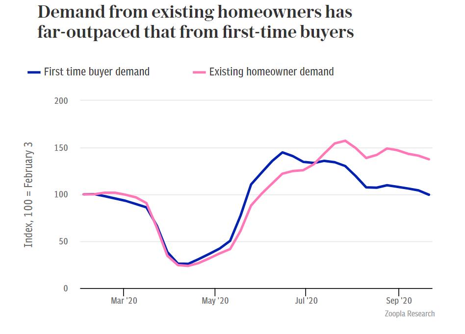Zoopla的研究发现,首次购房者的需求已降至和2月初大致相当的水平,但现有房主的需求则大幅上升。