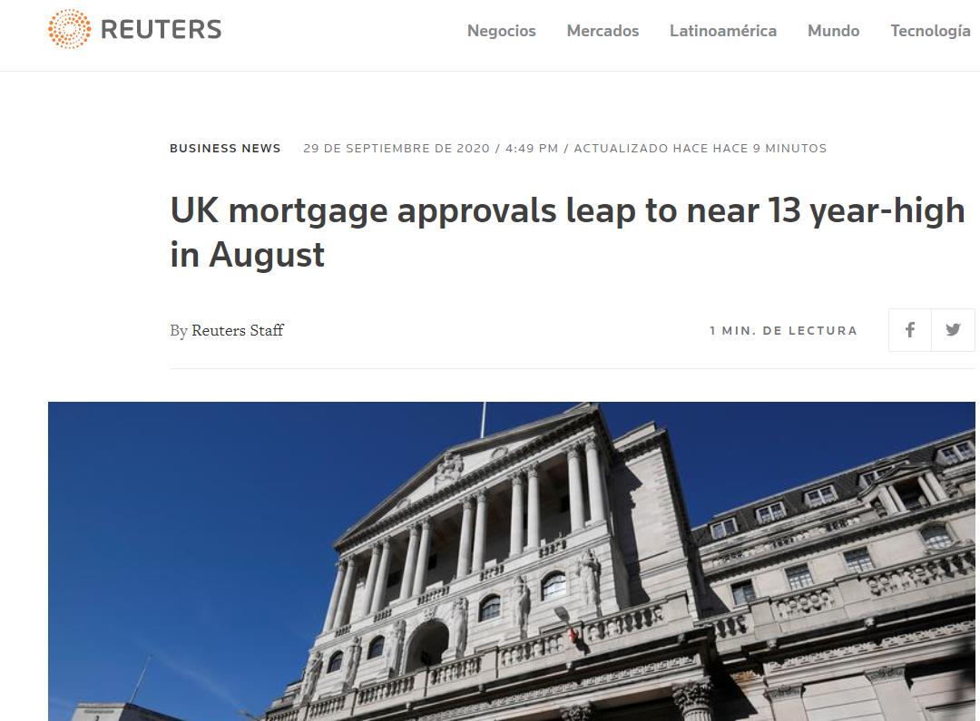 英国央行(Bank of England)的最新数据显示,英国8月份抵押贷款批准数为8.47万笔,创下了自2007年10月以来的最高水平。