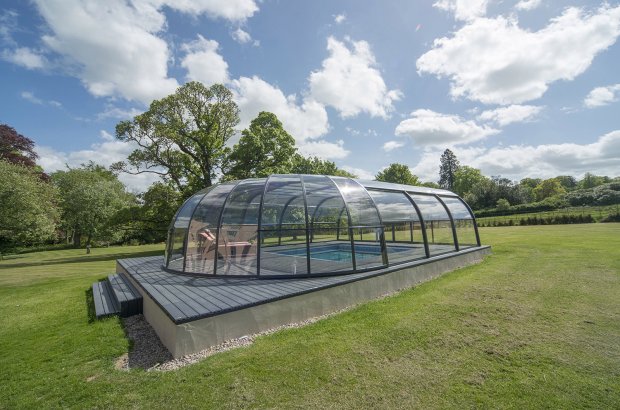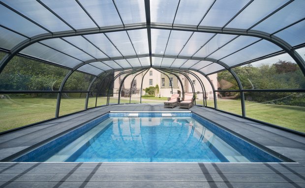 泳池被玻璃罩住,好似一个巨大的阳光房~