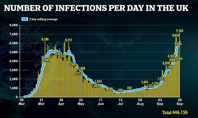 昨天,全英感染人数为7100多人,高于周一的4,044例和周日的5,693例。