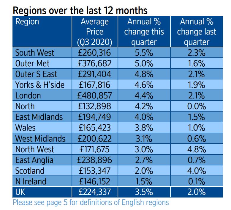 具体来看,各地3季度的平均房价均有所上涨,其中,伦敦仍是全国房价最高的地区,3季度同比增长4.4%,与第二季度相比,环比上涨2.1%。
