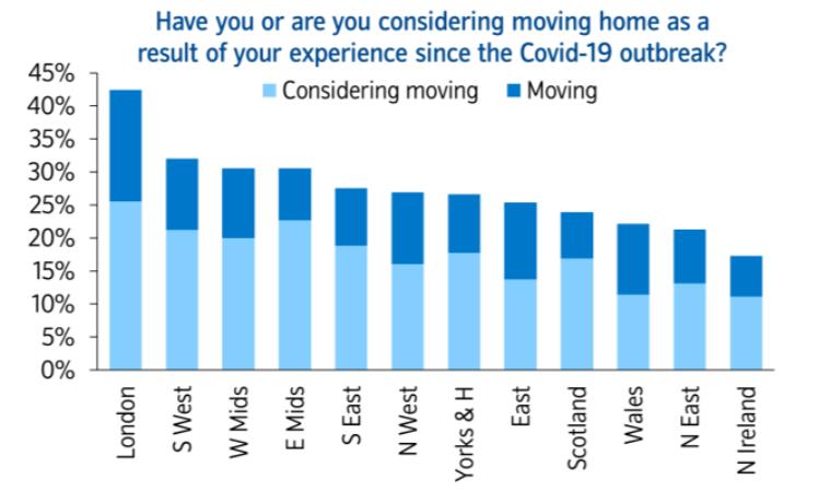 以Nationwide9月份的调查为证,疫情的反复增强了大家搬家的决心,尤其是在首都伦敦,在接受调查的人中,有约25%的人已经或正在搬家,而有约20%的人近期有搬家的计划。