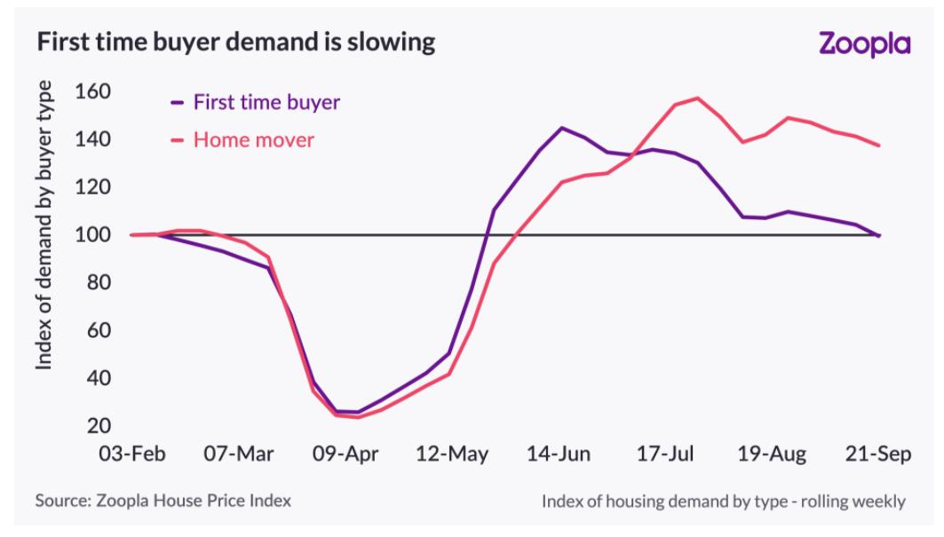 Zoopla的最新数据就显示,自5月份房地产市场解封以来,尽管首次购房者的兴趣仍远高于2019年的水平,但目前已回落至疫情前的水平,相比之下,现有房主买家搬家的意愿却比新冠大流行前高出了37%,比去年同期高了53%。