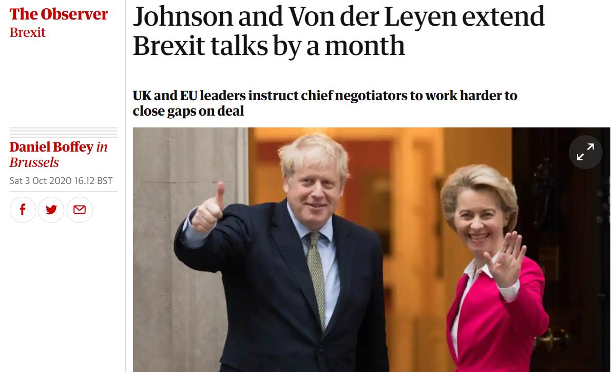 据媒体报道,鲍里斯和欧盟委员会主席乌尔苏拉·冯德莱恩在上周六达成共识,同意将脱欧谈判再延期一个月。