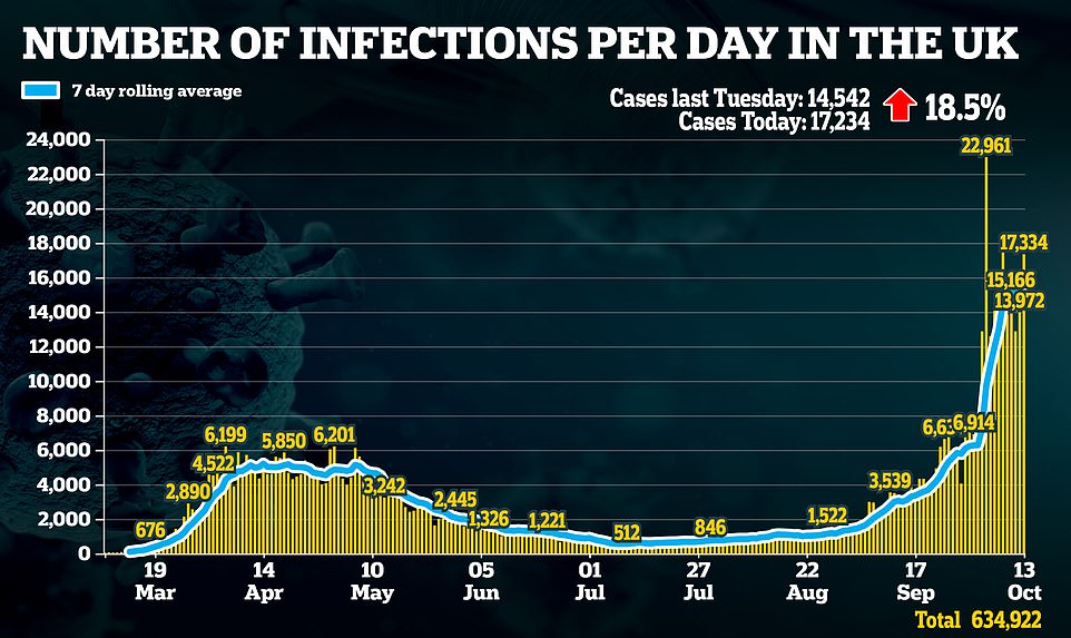 新确诊人数也比上周同一时间上涨了18.5%,达到日新增17,234人。